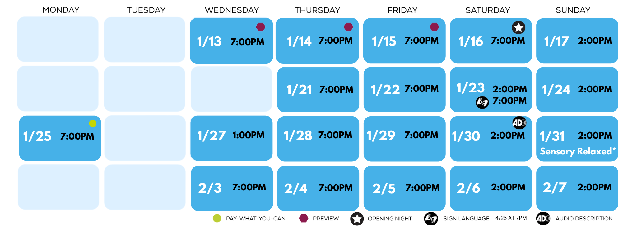 Please Note: Show Titles, Dates and Artists are subject to change.