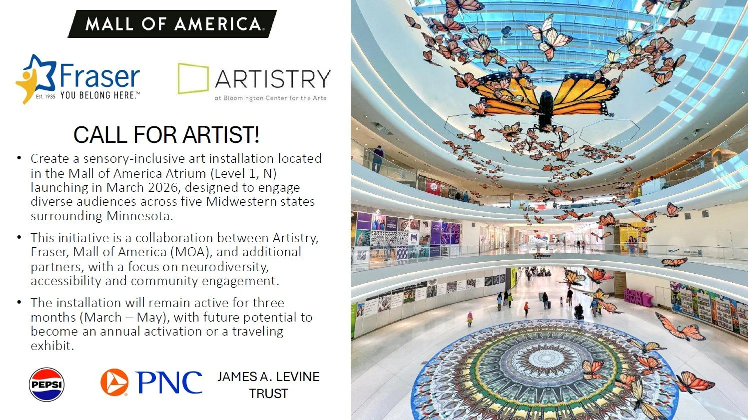 Mall of America® (MOA), Artistry, and Fraser are collaborating to create a sensory-inclusive, sustainability-focused art installation in the Mall of America Atrium (Level 1, North).