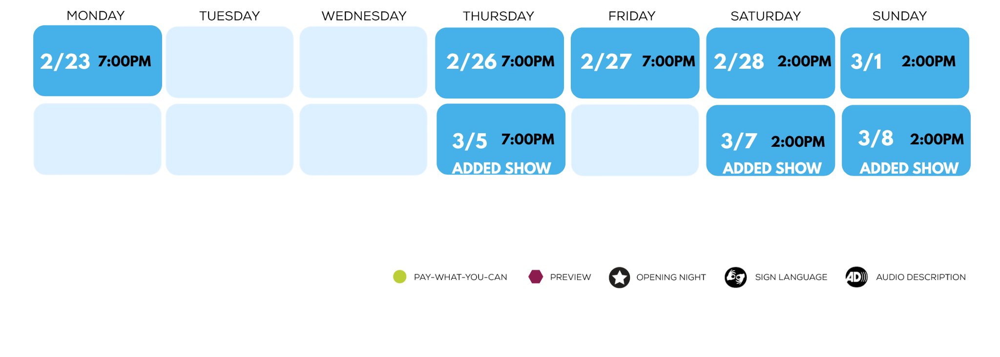 Show Titles, Dates and Artists are subject to change.