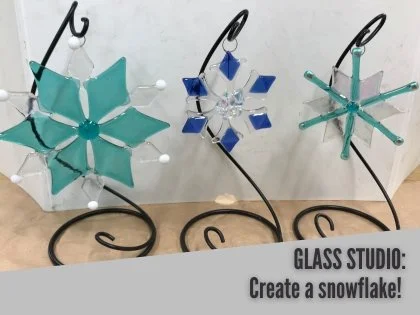 Create your very own ornament to gift or enjoy this holiday season! Our simple Fused Snowflake class offers a quick dip into the art of melting glass. We will teach you to cut glass to create your own design or use our pre-cut squares, diamonds, strips and dots to build your icy creation. All glass, tools and firings are provided and no experience is needed. This is a one day class!